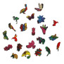 Тож відкриваючи коробочку з пазлов ви зможете зануритись у цікаве щебетання цього птаха та неймовірну історію його життя у тропічному лісі.