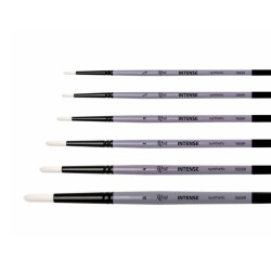 Серія INTENSE – пензлі із жорстким синтетичним волосом білого кольору - гарна альтернатива щетині для густих фарб та для створення фактурних мазків з характером. Пружний волос добре набирає та утримує олійну фарбу та акрил.