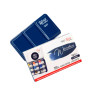 Набір 3403112 на 12 кольорів поєднує у собі традиційні кольори для техніки акварель. Більшість кольорів гами набору - одно пігментні, що дає можливість утворювати чисті відтінки при змішуванні. Металевий пенал зручний у роботі на пленері, в подорожі чи в студії. Він має дві палітри різної конфігурації та вставку для кювет.