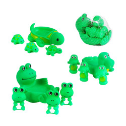 Набір пискавок включає 4 тваринки: маму та 3 її діточок. Кожна з іграшко має гучну пискавку, яка додасть грі яскраві емоції. Пискавки гарно тримаються на воді, тож можна влаштувати водні перегони.