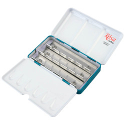 Представляємо стильний та функціональний пенал для акварельних фарб, який стане незамінним для кожного художника. Цей елегантний металевий пенал бірюзового кольору розрахований на 12 кювет з аквареллю ROSA Gallery.
