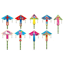 Повітряний змій представлений у різнобарвному забарвленні з малюнками улюблених мультгероїв.