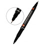 Маркер перманентний чорний двосторонній. Професійний маркер з двома наконечниками: кулеподібним (1 мм) та клиноподібним (3 мм). Чорнила забезпечують високу адгезію до різних поверхонь та швидке висихання. Корпус із міцного пластику, зручне захоплення.