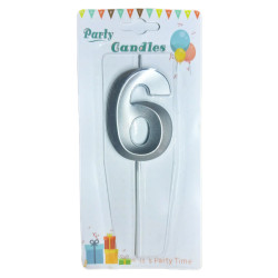 Свічка для торта срібна Party Candles 031185-6с – це стильний декоративний елемент для святкування дня народження чи ювілею. Срібна цифра надасть тортові святкового вигляду і стане яскравим акцентом на вашому столі. Свічка має висоту 7 см, що робить її помітною і ефектною на будь-якому десерті.
