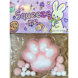 Іграшка антістрес Сквіш Таба Лапка Киці велика 7см 1шт арт1346-3 рожева з білим пухнаста