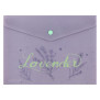 Папка на кнопці Axent 1496-36-A Lavender виконана з напівпрозорого пластика з блискітками. Ніжний колір в комбінації з шиммером створить святковий настрій і налаштує на продуктивну роботу. Закривається на кнопку і надійно зберігає документи від забруднень і заминань.