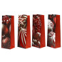 Подарунковий пакет для пляшки №2605 виготовлений з міцного паперу, призначений для стильного та зручного пакування пляшок на подарунок. Такий пакет забезпечує презентабельний вигляд і надійність при транспортуванні. Він має яскравий дизайн та доповнений ручками з шнурка для легкого перенесення. Ідеально підходить для подарункових вин, шампанського або інших напоїв, додаючи святкового настрою та елегантності вашому презенту.
