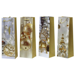 Подарунковий пакет для пляшки №2604 виготовлений з міцного паперу, призначений для стильного та зручного пакування пляшок на подарунок. Такий пакет забезпечує презентабельний вигляд і надійність при транспортуванні. Він має яскравий дизайн та доповнений ручками з шнурка для легкого перенесення. Ідеально підходить для подарункових вин, шампанського або інших напоїв, додаючи святкового настрою та елегантності вашому презенту.