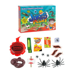 Цей набір містить все необхідне для справжніх приколістів та майстрів розіграшів: фальшиві таргани, підкинуті у їжу, пластиковий кубик льоду у якому ховається муха, подушка, яка, якщо на неї сісти видасть кумедні звуки, гумовий олівець, яким неможливо нічого написати та ще багато інших гаджетів та приладів для пранків. З цим набором ви станете справжньою зіркою кожної вечірки, адже розіграші, які можна виконати завдяки цьому набору, усіх повеселять та розважать.