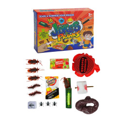 Цей набір містить все необхідне для справжніх приколістів та майстрів розіграшів: фальшиві таргани, підкинуті у їжу, пластиковий кубик льоду у якому ховається муха, подушка, яка, якщо на неї сісти видасть кумедні звуки, гумовий олівець, яким неможливо нічого написати та ще багато інших гаджетів та приладів для пранків. З цим набором ви станете справжньою зіркою кожної вечірки, адже розіграші, які можна виконати завдяки цьому набору, усіх повеселять та розважать.