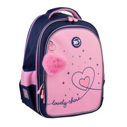 Завжди трендовий патерн з сердечками та комбінація рожевого і чорного кольору – ідеальний варіант класичного рюкзака. Брелок у формі серця неодмінно сподобається дівчинці.