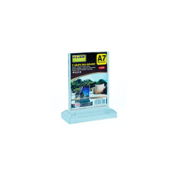 Ця підставка призначена для розміщення рекламних матеріалів, меню або інформаційних оголошень у форматі 74*105 мм. Виготовлена з прозорого пластику, вона має фігурний дизайн, що додає естетичності та привертає увагу.
