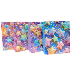 Пакет подарунковий паперовий 18*23*10см ООПТ з фольгою Зірки з кульками, асорті 1110-S