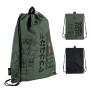 Простота у використанні. Закривається та відкривається одним рухом. З двох сторін затягується шнурками та перетворюється на міні-рюкзачок, який можна носити за спиною чи на плечі. Для зручності передбачена петля для підвішування сумки на гачок або вішалку.