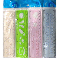 Лінійка-шаблон геометричний набір 4шт. 15см*6см +цифри+букви