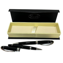 Набір ручок Sonata - елегантний комплект, що включає пір'яну та ролерну ручки. Виконані в єдиному стильному дизайні та упаковані у подарунковий футляр. Ідеальний варіант для ділових людей, студентів та як презент.