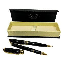 Набір ручок Sonata - елегантний комплект, що включає пір'яну та ролерну ручки. Виконані в єдиному стильному дизайні та упаковані у подарунковий футляр. Ідеальний варіант для ділових людей, студентів та як презент.