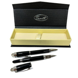 Набір ручок Sonata - стильний та функціональний комплект, що включає ролерну та кулькову ручки в єдиному класичному дизайні. Запакований в елегантний подарунковий футляр, що робить його чудовим вибором для подарунка або ділового використання.