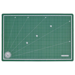 Щільна основа з багатошарового синтетичного матеріалу для робіт з різання паперу, картону і т.д. Має сантиметрову розмітку. Дозволяє різати ножем м'яко і безпечно. Твердий проміжний шар запобігає прорізання килимка, а завдяки спеціальному покриттю залишаються на поверхні розрізи не помітні. Використовується для захисту меблевої поверхні від порізів і подряпин. Килимок потрібно зберігати подалі від прямих сонячних променів, на плоскій поверхні. Килимок можна піддавати різкого пере
