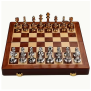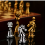 Дерев'яна дошка забезпечує стабільне положення фігур та естетично гармонує з металевими елементами. Набір підходить як для гри вдома, так і для подарунка поціновувачам шахів.