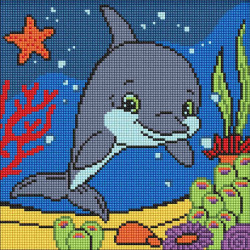Набір для створення яскравої та позитивної картини із зображенням доброзичливого дельфіна. Сюжет наповнений легкістю та морським настроєм, а готова робота стане чудовою прикрасою дитячої кімнати або приємним подарунком.