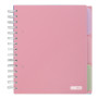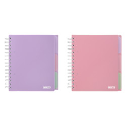Міцна пластикова обкладинка захищає сторінки від пошкоджень та вологи, а роздільники допомагають структурувати записи на теми. Спіральне кріплення забезпечує зручне перегортання та можливість розкривати зошит на 360 градусів.
