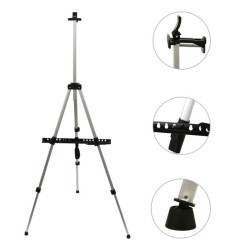 Легкий розкладний алюмінієвий мольберт - чудовий вибір, якщо ви плануєте написати пейзаж на природі, або працювати на пленері. Компактний, легко і легко складається і займає мало місця. Зручний для перенесення у складеному стані, завдяки тканинній сумці з ременем, яка входить у комплект, за допомогою якої триногу можна носити на плечі, вона кріпиться на спину подібно до рюкзака. Також вона захистить мольберт від дощу чи технічних ушкоджень.