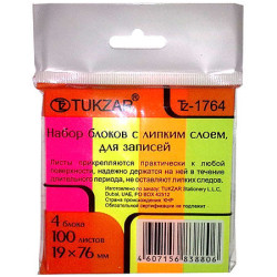Папір для нотаток з липким шаром 19*76мм 4кол. блока по 100арк TUKZAR Tz-1764