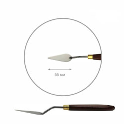 Високоеластичний мастихін, з нержавіючої сталі, з дерев'яною лакованою ручкою і паяним лезом, що, гарантує його довговічність.