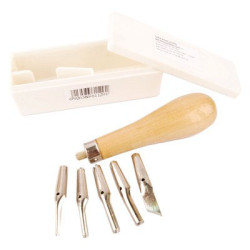 В склад набору входять STRONG> дерев'яна зручна ручка і 5 якісних змінних лез, якими зручно вирізати дрібні деталі. Набір упакований в пластиковий пенал.