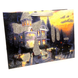 Пакет подарунковий паперовий YL-SD-004-007A 37*27*12,5см Новорічний з глітером