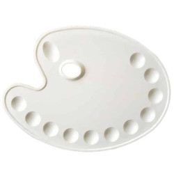 Палітра пластикова - невелика тонка та легка дошка овальної форми, на якій художник змішує фарби під час роботи. Палітра має отвір великого пальця руки.