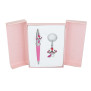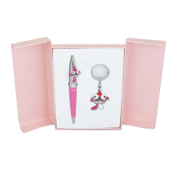 У наборі кулькова ручка і брелок.