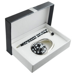 У наборі кулькова ручка і гачок для сумки.