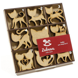 Заготовка для декорування Zabava (ДВП) Грайливі коти ! ПОШТУЧНО 1/36 ! без підставки 6*6см SET009