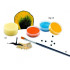 • У комплекті підібрано 3 баночки з фарбою, що переливаються наклейки і пензлик. У наборі є докладна інструкція з чого починати малювання, а також 6 ідей для відтворення сміливого тигра. З гримом