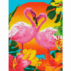 Хочете створити прекрасний предмет інтер'єру, подарунок своїми руками або просто відмінно провести час? Це можливо використовуючи набір алмазна картина Пара фламінго-2.