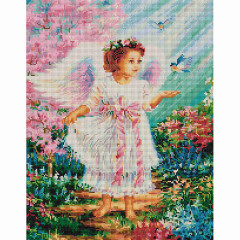 Алмазна мозаїка по номерам на холсті 40*50см Никитошка GF3397 Янголятко з синичками