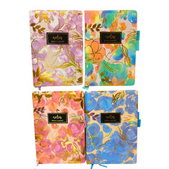 Блокнот А6 80арк Лидер №6500-25 Золоті гілочки, з утримувачем для ручок, в клітинку, асорті
