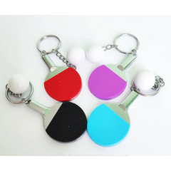 • Яскравий пластиковий брелок у вигляді ракетки для настільного тенісу з кулькою.