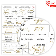 Односторонній дизайнерський папір від ROSA TALENТ Слова, Фрази, Вітання (рос) у форматі А4 використовується в техніках скрапбукінг та кардмейкінг, для оформлення листівок, подарункових упаковок, коробочок, скриньок, бонбоньєрок та багато іншого.