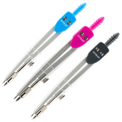 Кріплення рухомої частини циркуля виконані фіксуючими болтами. Гостра сторона циркуля захищена ковпачком.
