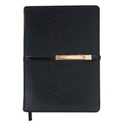Щоденник REPTILE виготовлений зі штучної шкіри (під рептилію) з декоративним золотистим замком, який закривається хлястиком, завдяки якому щоденник не розкриється в сумці.