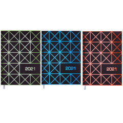 Щоденник датований 2021 Buromax Linea. Щоденники BUROMAX - це завжди широкий вибір самих різних обкладинок, фактур і квітів. Ми знайдемо підхід до серця кожного покупця! Високоякісна тверда поліграфічна обкладинка з ламінуванням soft touch і вибірковим нанесенням УФ-лаку щоденника LINEA має стильний дизайн з модним геометричним візерунком, виконаному в яскравих неонових відтінках з лакуванням візерунка. Гармонійно доповнює дизайн нанесення року на торці. Закладка-мотати білого кольору по