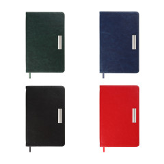 Гнучка обкладинка щоденника SALERNO виконана з гладкої штучної шкіри. Унікальним елементом дизайну є металевий декор - шильда на лицьовій стороні обкладинки. Гармонійно доповнює дизайн сліпе тиснення року на корінці і тонований зріз внутрішнього блоку в колір обкладинки.