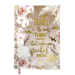Жорстка поліграфічна обкладинка щоденника FATTORE виконана в розкішному квітковому дизайні зі стильним фольгуванням та цікавою фразою, що спонукає діяти.
