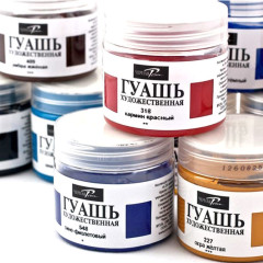 • Гуаш має яскравий, насичений, глибокий відтінок, добре перекривається і утворює оксамитову поверхню, не розмивається при змішуванні і розведенні.