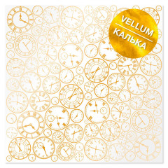 Golden Clocks - Веллум (калька) - напівпрозорий папір (золотим тисненням). Калька використовується в скрапбукінге, кардмейкінге, як елемент декору, для створення конвертів, подарункової упаковки, роздільників для альбомів і блокнотів.