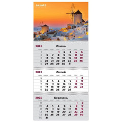 Календар настінний квартальний 2025 Axent на 3 спиралі 29,7*63см 8803-25-8-A Greece 2