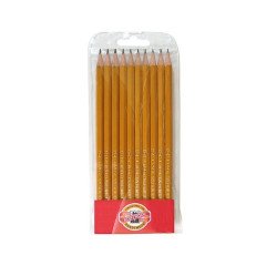Набір олівців Koh-I-Noor серії 1570 призначений для креслення та графічних робіт. У набір входить 10 заточених чорнографітних олівців, запакованих у пластиковий полібег. В асортименті представлені олівці з 10 градаціями твердості графіту: 2H, H, HB – 3 шт., B – 2 шт., 2B – 2 шт., 3B.